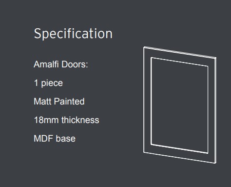 Amalfi has a one piece door with a shallow router and narrow frame, Amalfi provides detail without the dust traps! Simplistic beauty and an ideal choice for linear design.