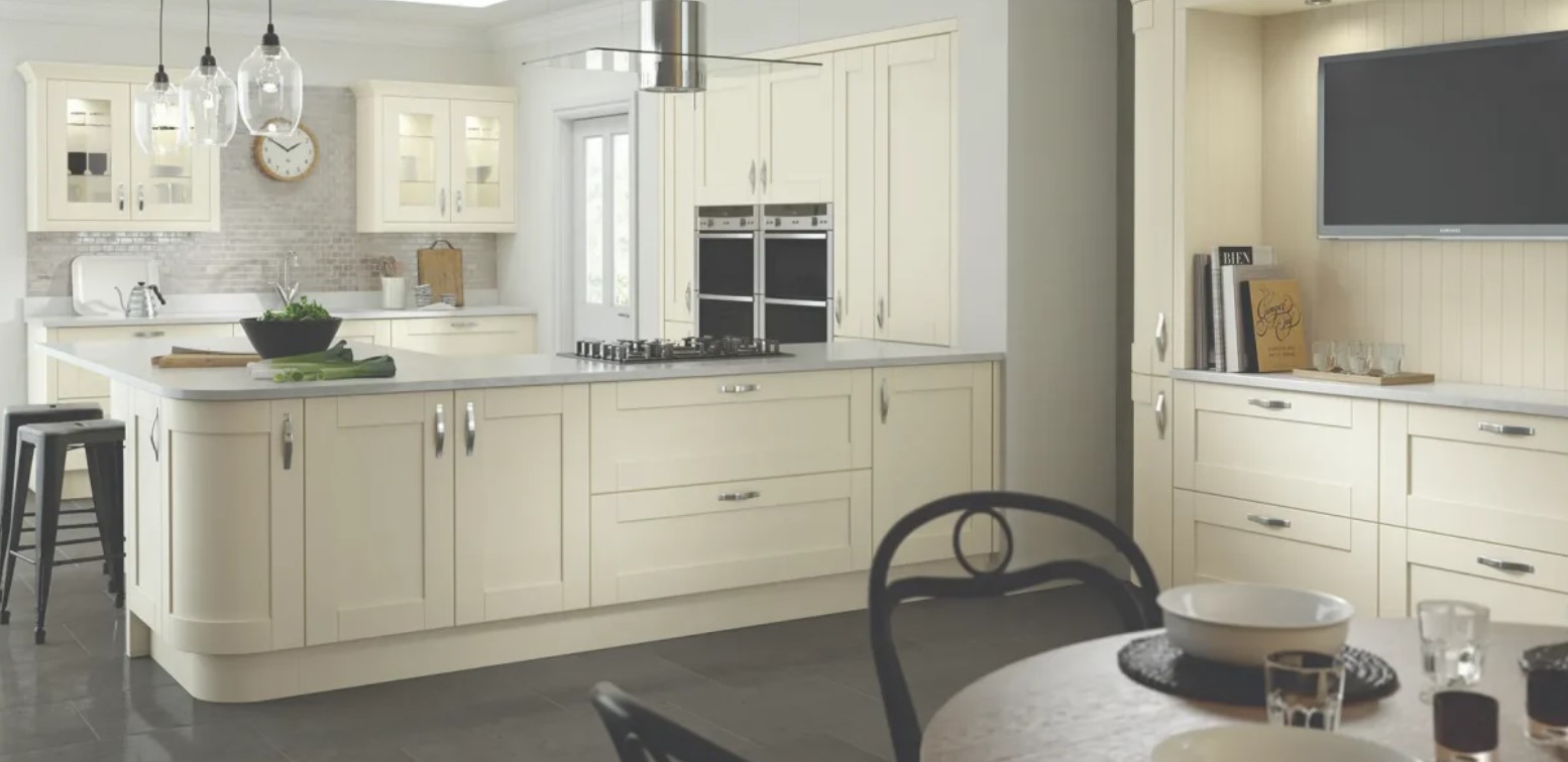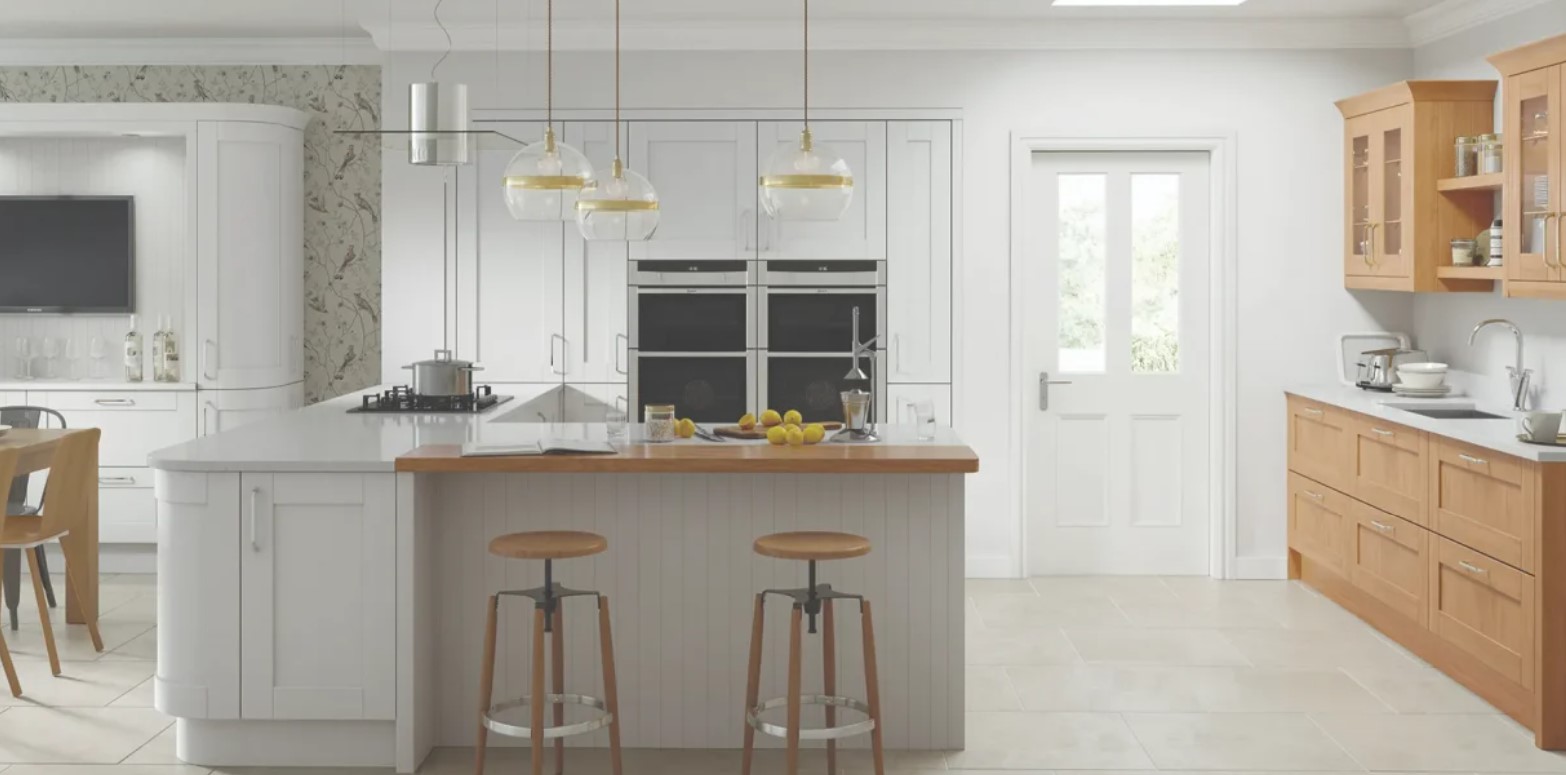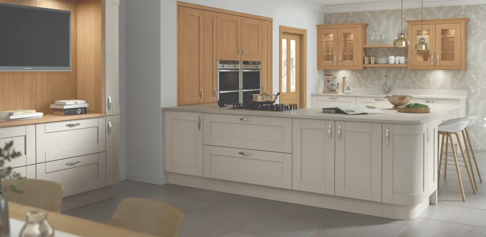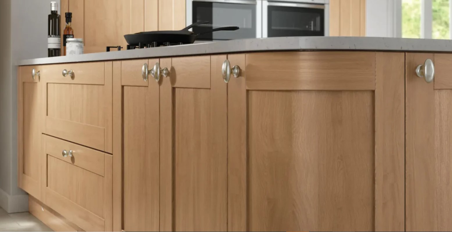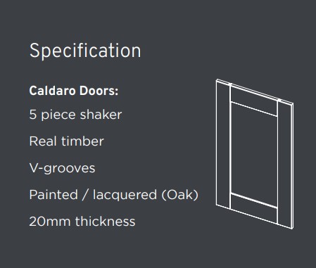 The timber grain on the Caldaro door is evident on every colour, a true sign of quality. The 1245mm high curved doors take a kitchen to another level.