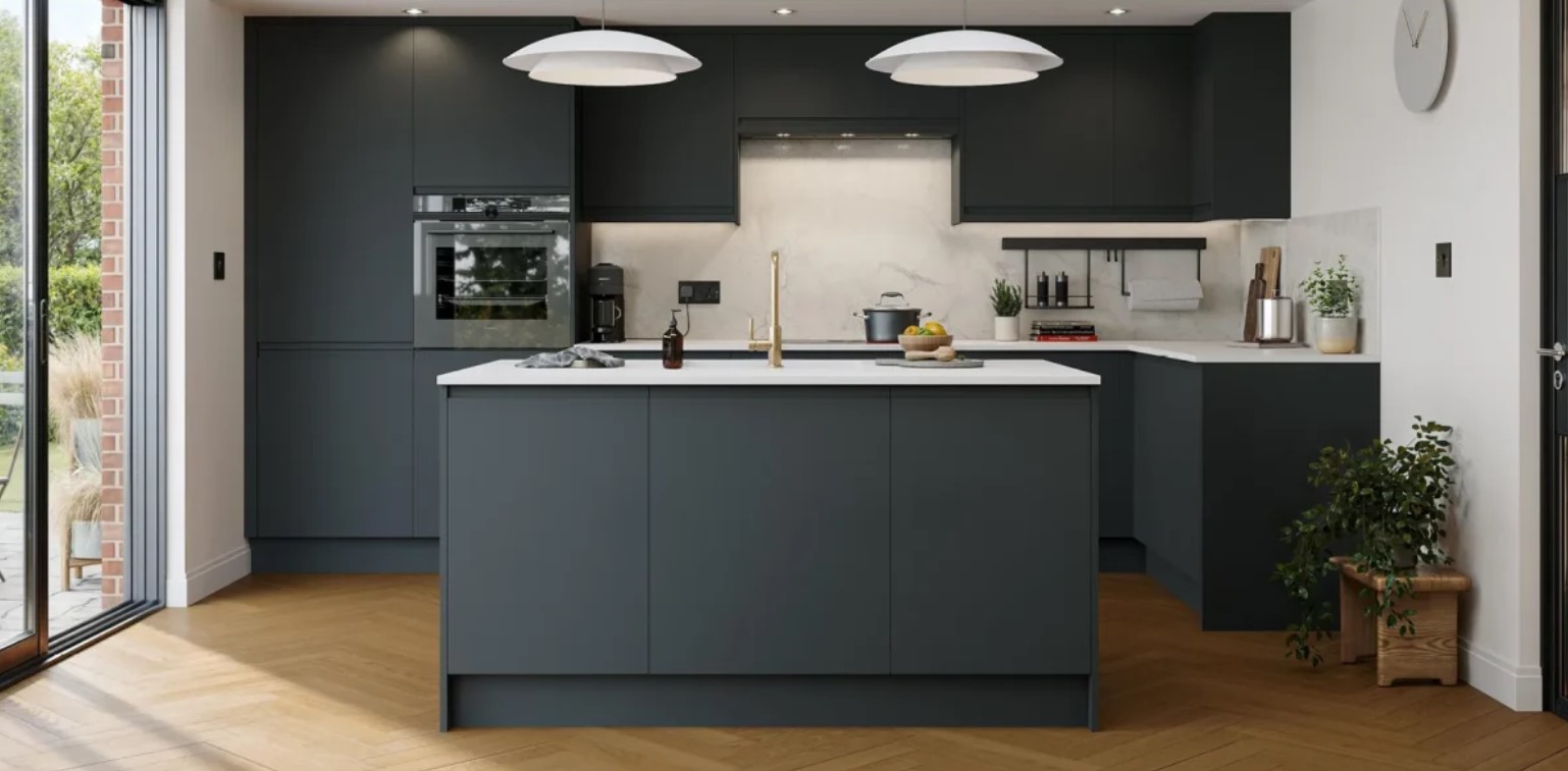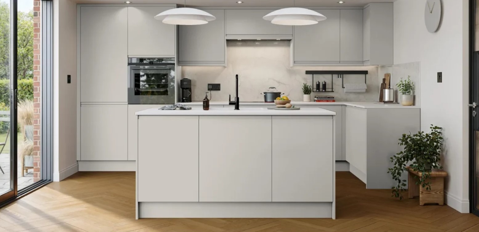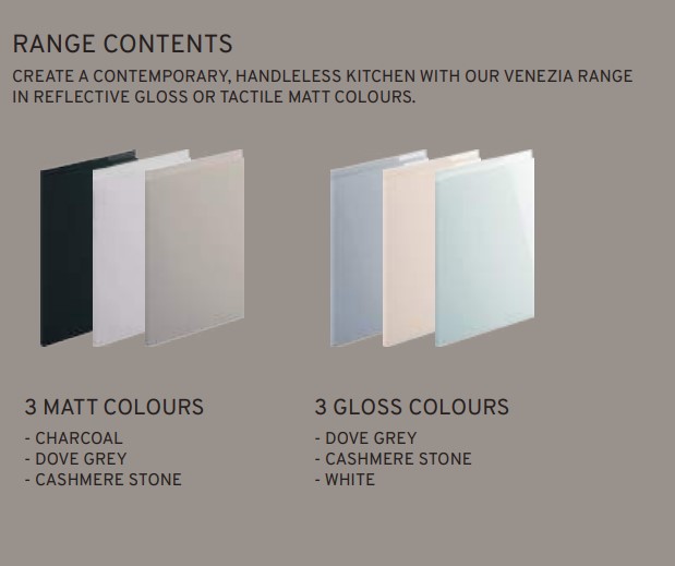 Create a contemporary, handleless kitchen with our Venezia range in reflective gloss or tactile matt colours.