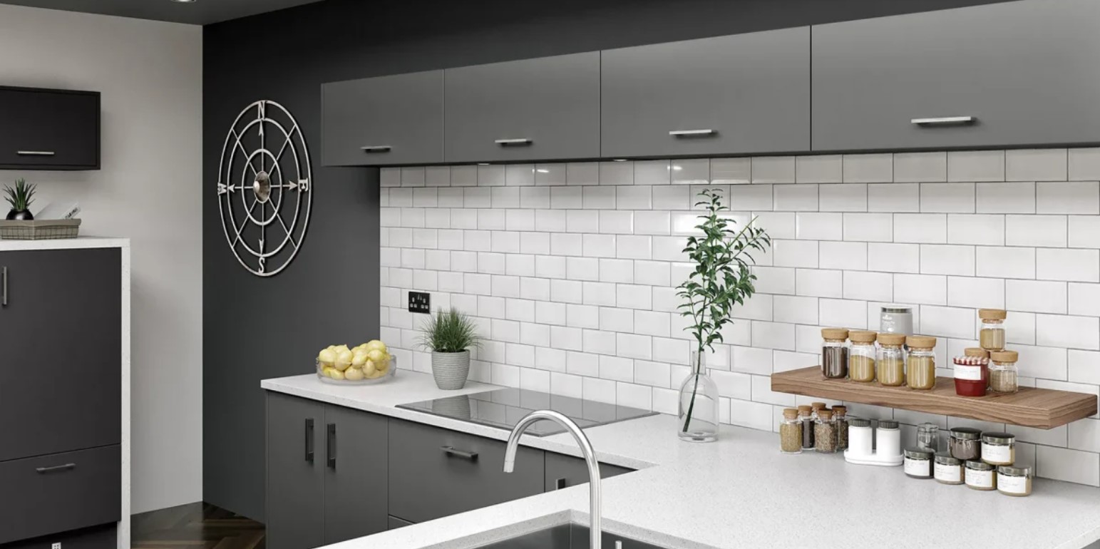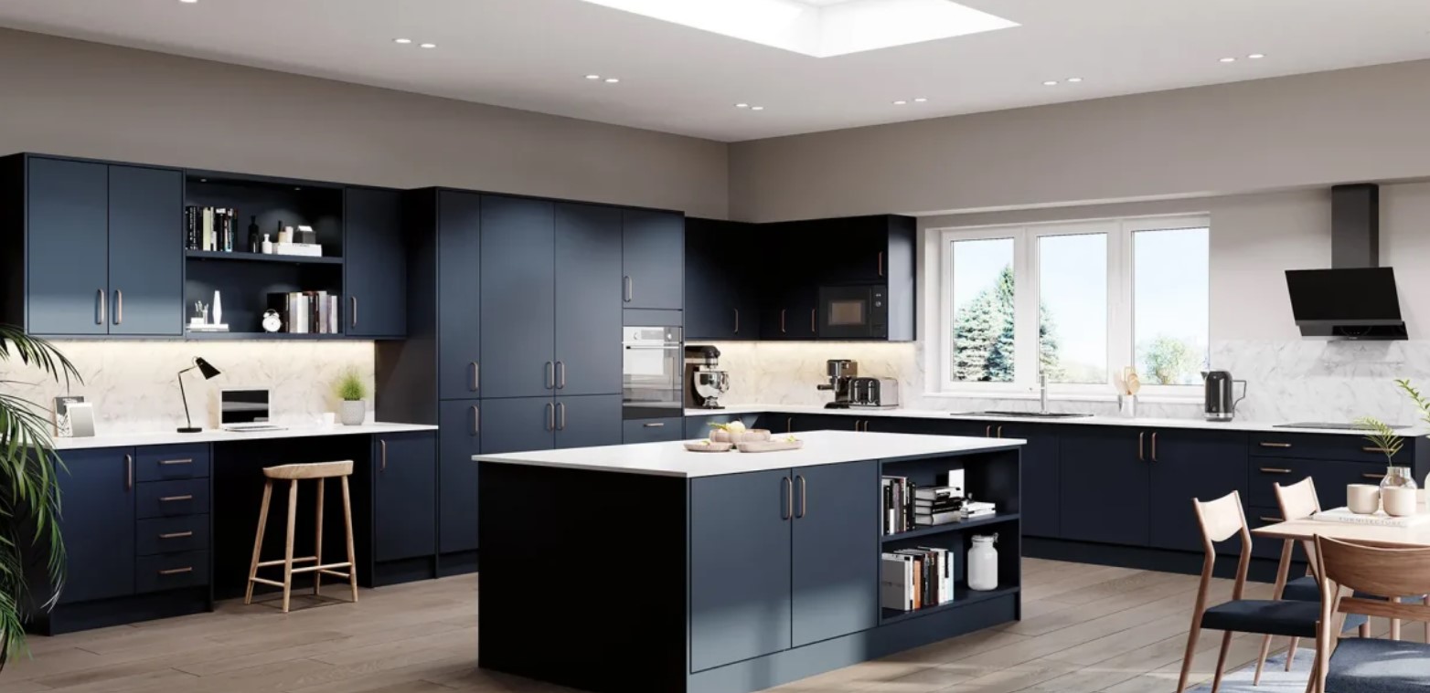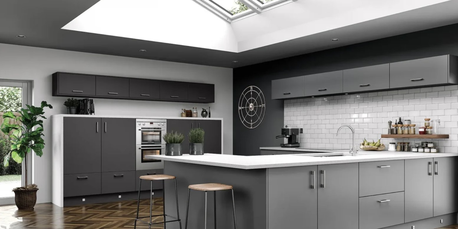 Varano Matt is a lasting, versatile slab door that suits any kitchen, with a tactile finish and full-height larder doors